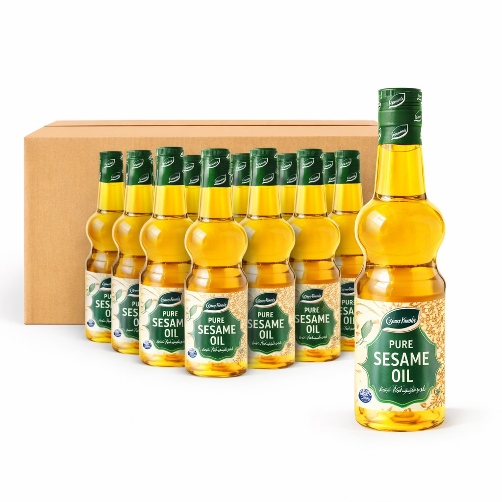 Premium sesame oil supplied as 12 × 425ml bottles. Ideal for cooking, seasoning, and traditional dishes.