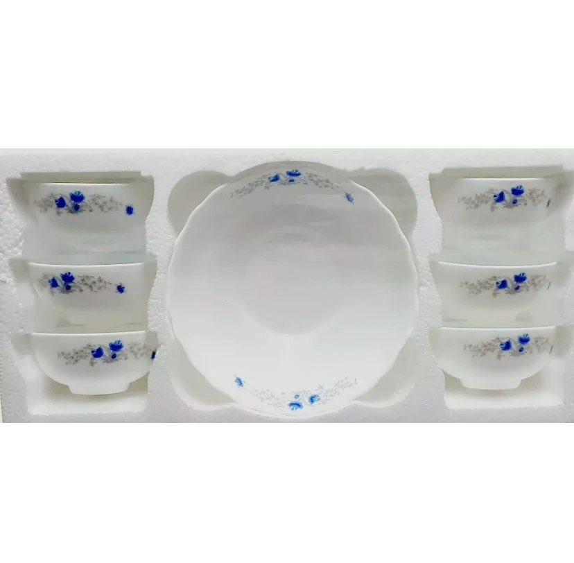 Elegant and durable 7-piece opal glassware set, ideal for everyday dining and serving.