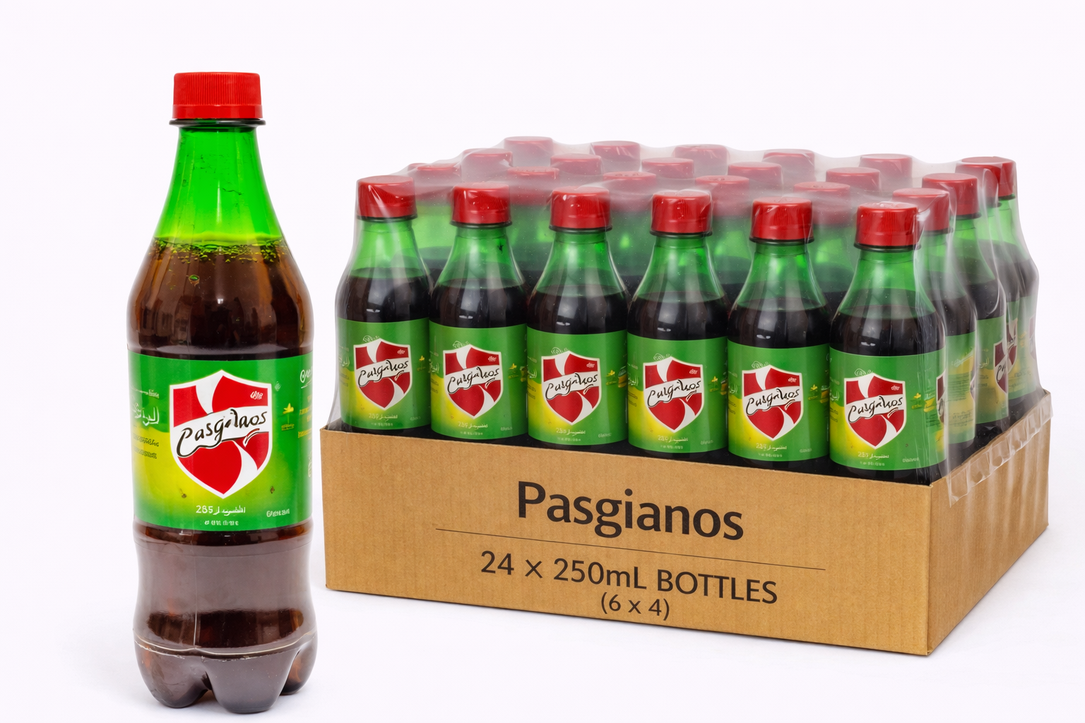 Refreshing Pasgianos Juice Drink in convenient 250ml bottles, packed in a box of 24.